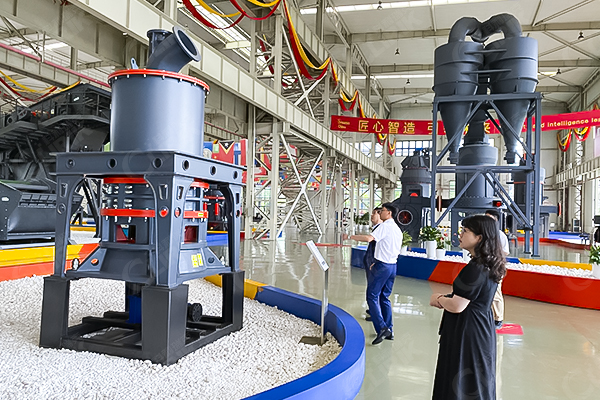 隨后帶領(lǐng)王總參觀了我們公司的產(chǎn)品展廳,并著重介紹了適合王總公司生產(chǎn)項目的磨粉機器——HGM超細粉磨機。HGM 超細粉磨機是我們自主研發(fā)的一款磨粉機器,一共有5種型號,可以研磨300-3000目的礦石粉末;根據(jù)不同細度,產(chǎn)量可達1-45 t/h,可用于非爆非易燃的非金屬礦石研磨。HGM超細磨粉機占地面積小,使用壽命長,生產(chǎn)效率高能耗低,操作簡單易上手,且是一款符合國際環(huán)保要求的礦石磨粉機。